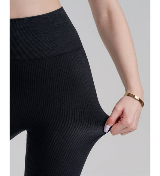 Yüksek Belli Toparlayıcı Fitilli Siyah Tayt